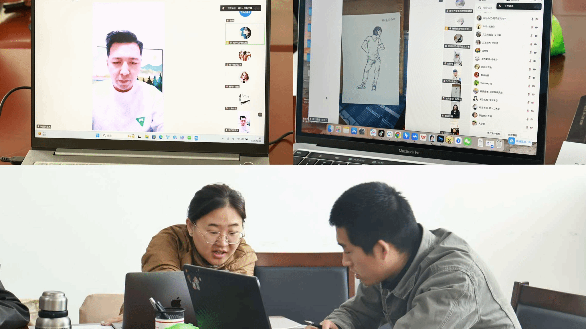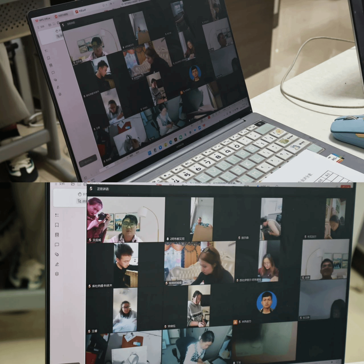 美术学与艺术设计学专业考生于11:40完成创作。考试结束后,监考教师立即组织考生通过摄像头逐一展示答卷(绘画或设计作品),由专业评委现场进行线上评分。
